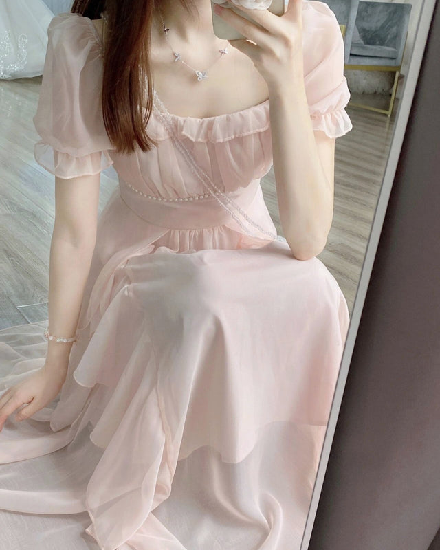 ときめきは、淡くきらめくピンクのドレスとともに。