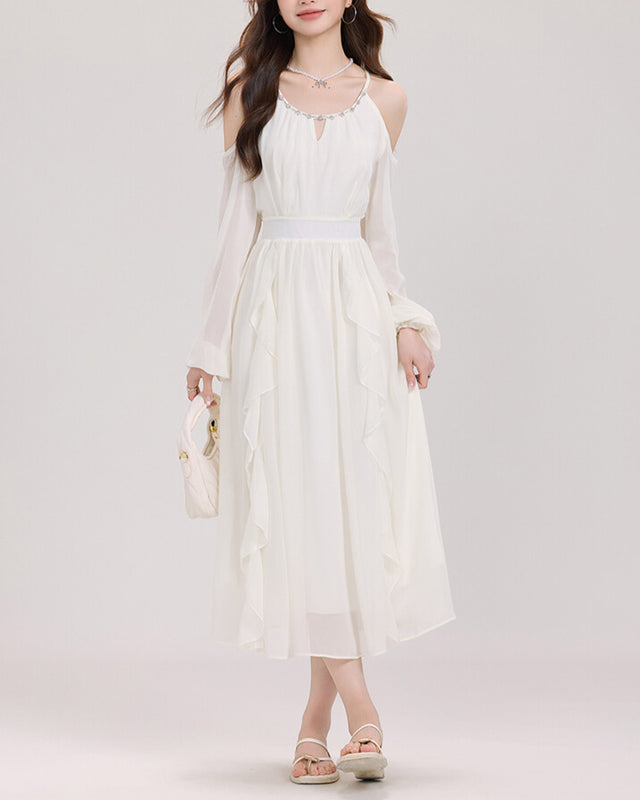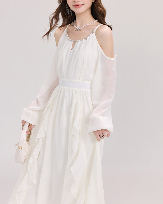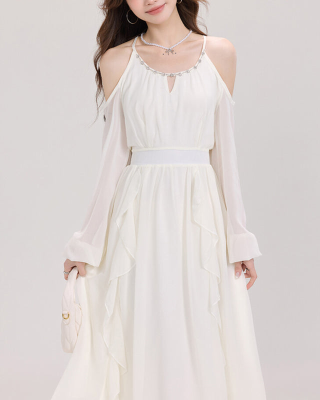 やわらかな白に包まれて、透明感がふわりと灯る大人フェミニンワンピース。