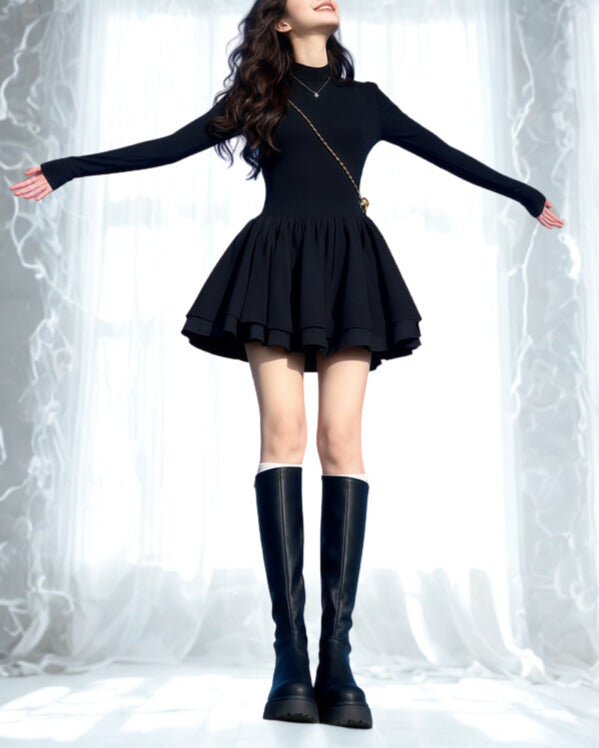 シンプルなのに、着た瞬間スタイルが整うブラックワンピース。