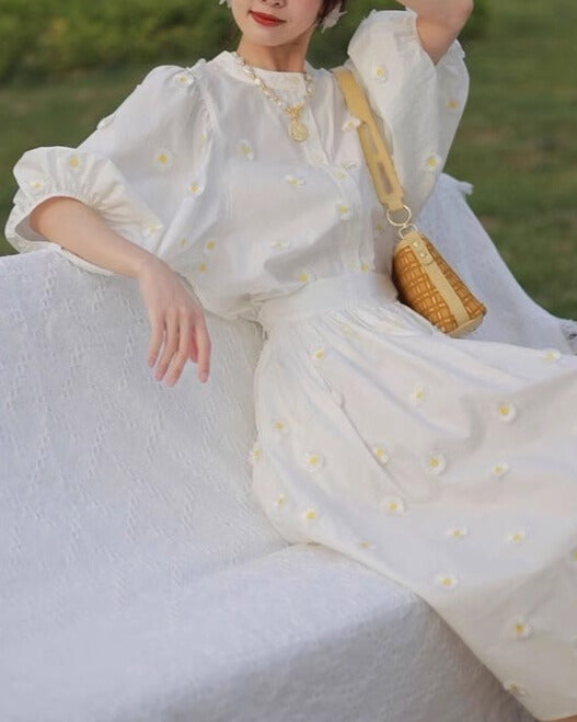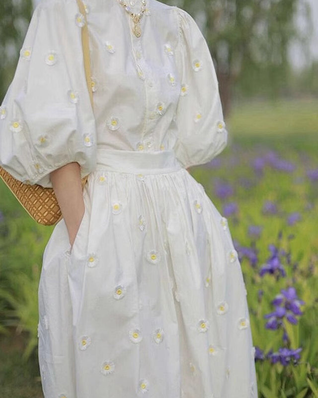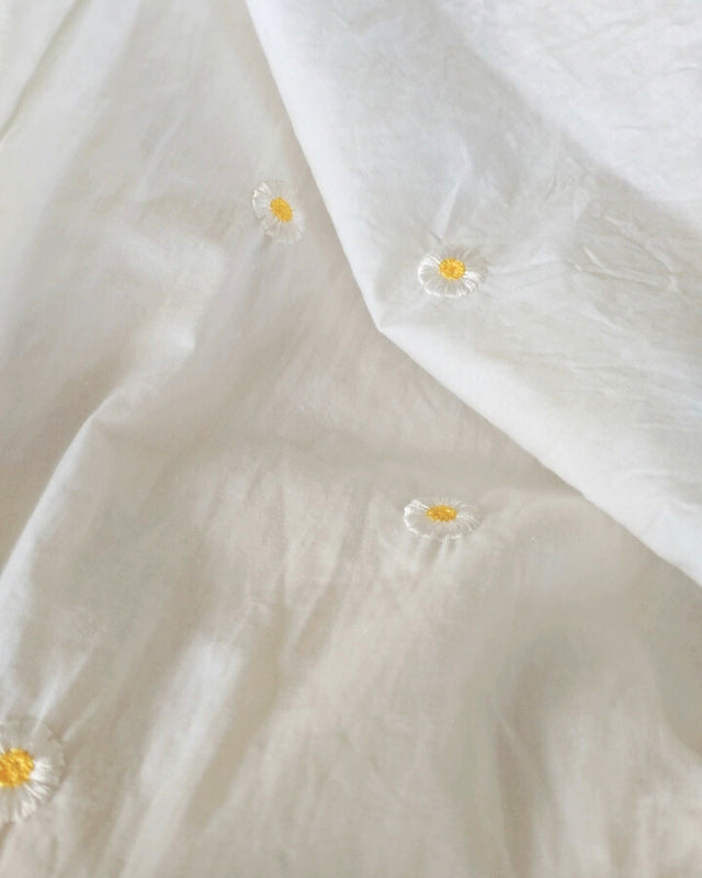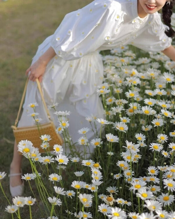 ぽこぽこと愛らしく咲いたデイジー刺繍が散りばめられた、やわらかなホワイトワンピース。