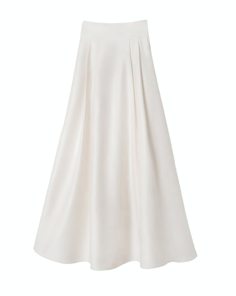 ホワイトスカートが動くたびにふわりと広がり、清楚で爽やかな雰囲気をプラス。