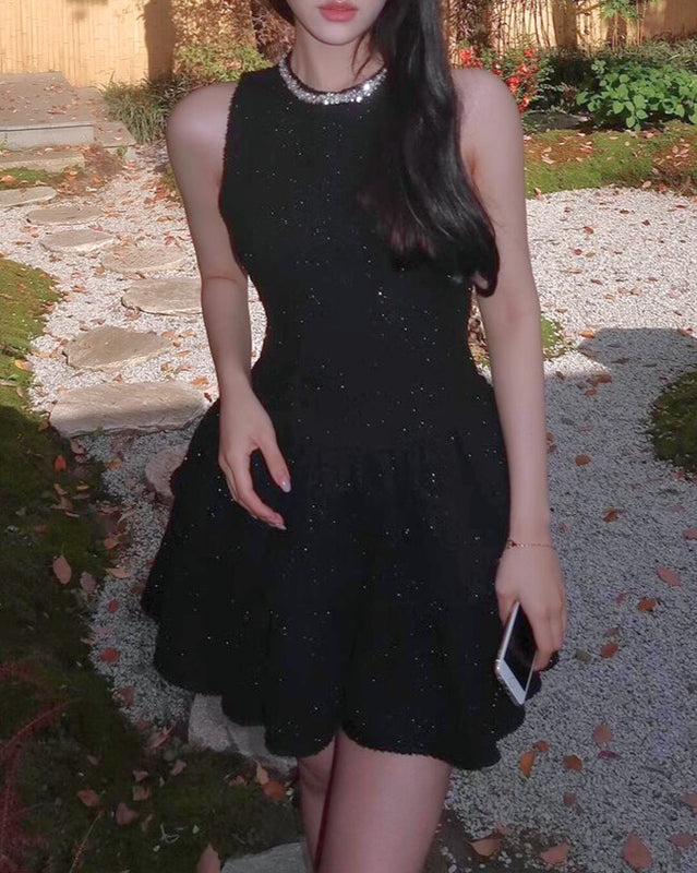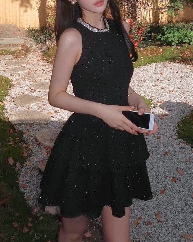 深い夜を歩くと、ブラックドレスのラメがひそやかに瞬いて、