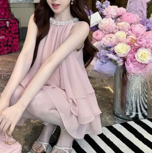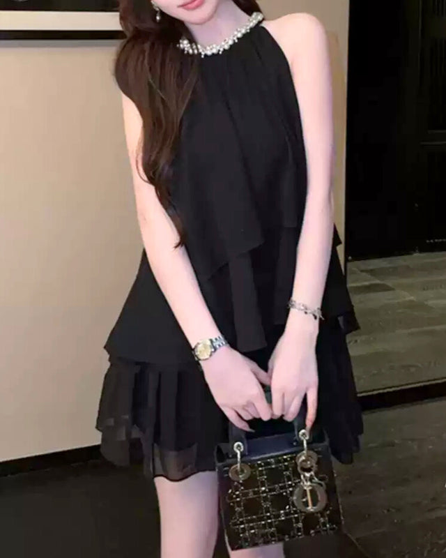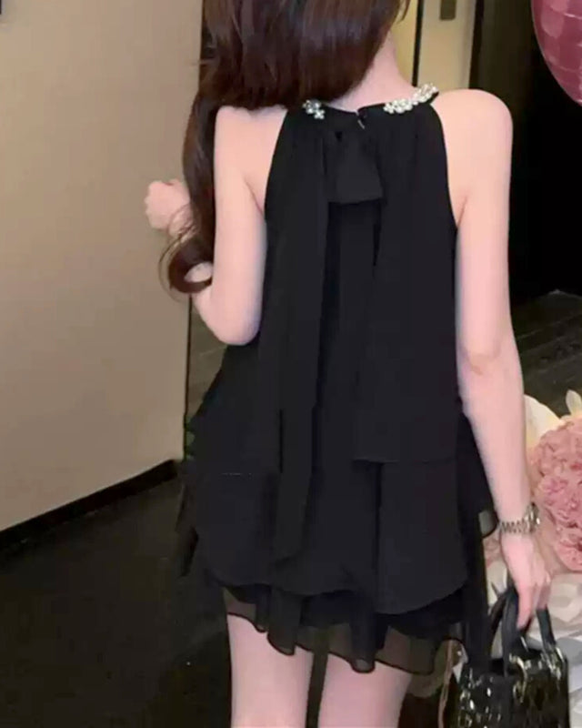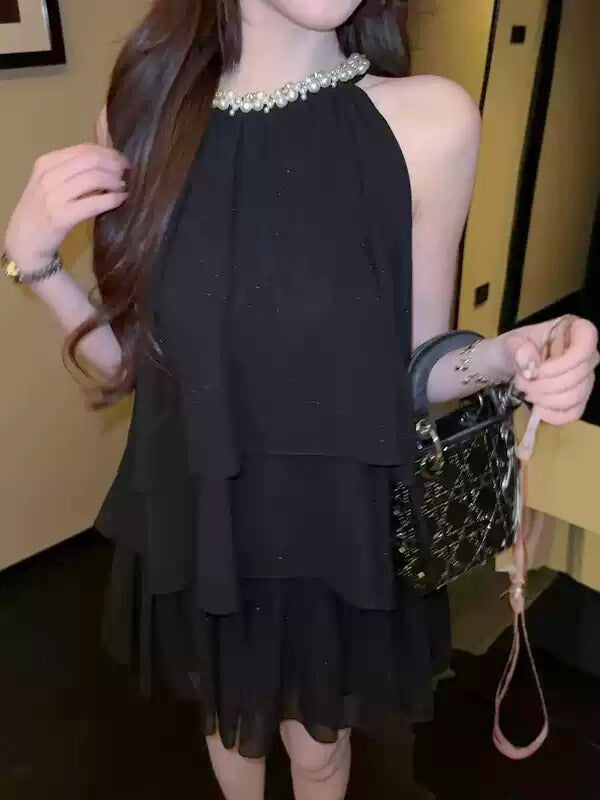 ブラックシフォンがふわりと揺れて、夜の空気に溶けていく──そんな余裕を纏えるドレス。