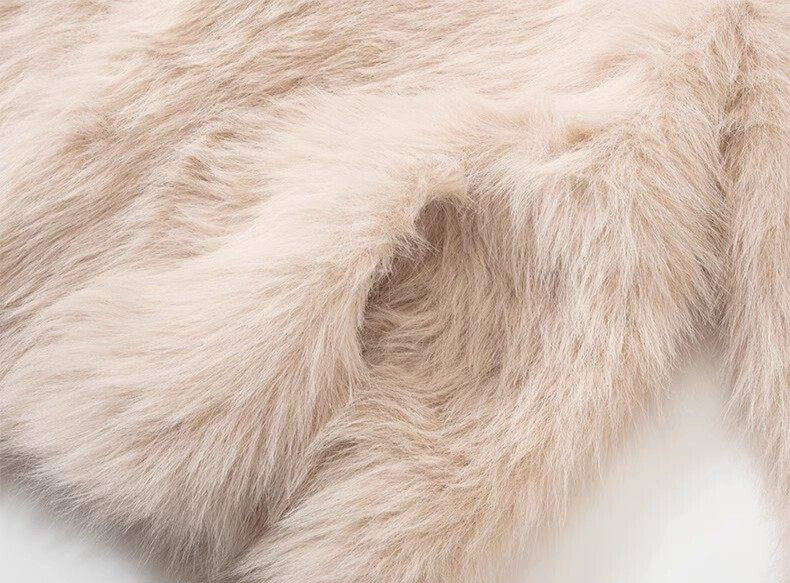 ボリューム感のあるファーが顔まわりを華やかに演出しつつ、